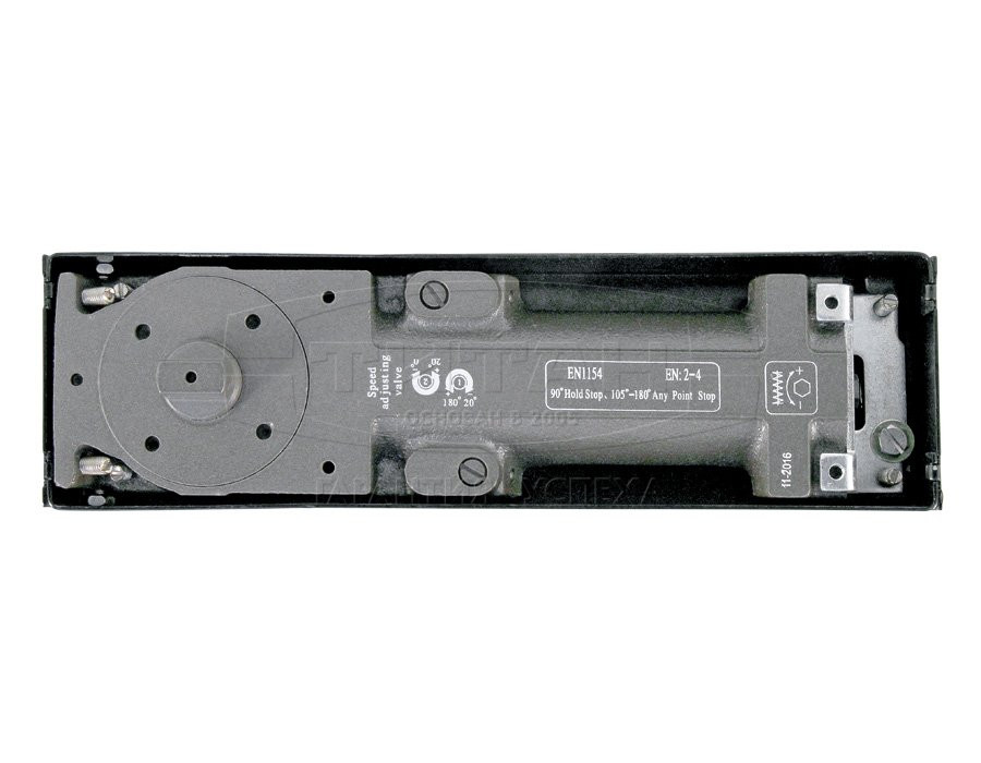 2-х диапазонное регулирование скорости; При установке деревянных, алюминиевых и стальных дверей на доводчик, необходимо использовать верхнюю маятниковую петлю T089A и нижний рычаг T089B, которые докупаются отдельно. Зазор между дверью и полом 10-12 мм