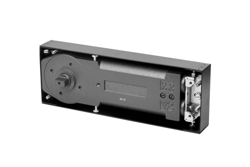 Скрытый дверной напольный доводчик необходим для плавного закрытия дверного полотна из алюминия или закаленного стекла. Они устанавливаются скрыто в напольное покрытие, тем самым не вмешиваясь в общий интерьер помещения. Данный доводчик способствует аккуратному закрыванию и открыванию самых разных дверей из стекла, что существенно продлевает срок службы всей системы. В качестве отделки используется матовая нержавеющая сталь высокого уровня прочности, которая не подвергается коррозии.