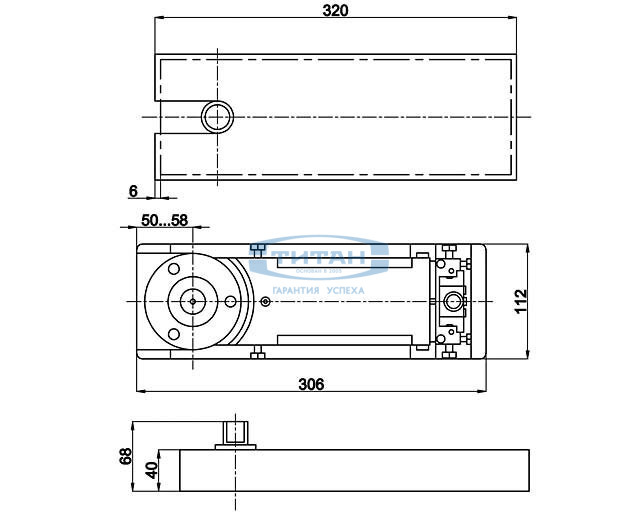 2-х диапазонное регулирование скорости; При установке деревянных, алюминиевых и стальных дверей на доводчик, необходимо использовать верхнюю маятниковую петлю T089A и нижний рычаг T089B, которые докупаются отдельно. Зазор между дверью и полом 10-12 мм