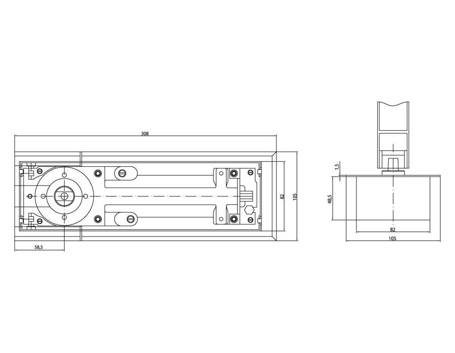 2-х диапазонное регулирование скорости; При установке деревянных, алюминиевых и стальных дверей на доводчик, необходимо использовать верхнюю маятниковую петлю T089A и нижний рычаг T089B, которые докупаются отдельно. Зазор между дверью и полом 10-12 мм