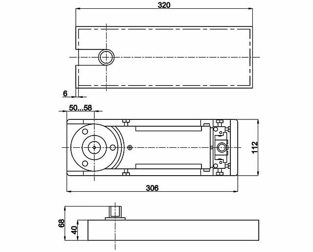 EN 4...5 (рекомендуемая ширина двери от 850 до 1150 мм, вес двери до 90 кг); При установке деревянных, алюминиевых и стальных дверей на доводчик, необходимо использовать верхнюю маятниковую петлю T089A и нижний рычаг T089B, которые докупаются отдельно. Зазор между дверью и полом 10-12 мм.