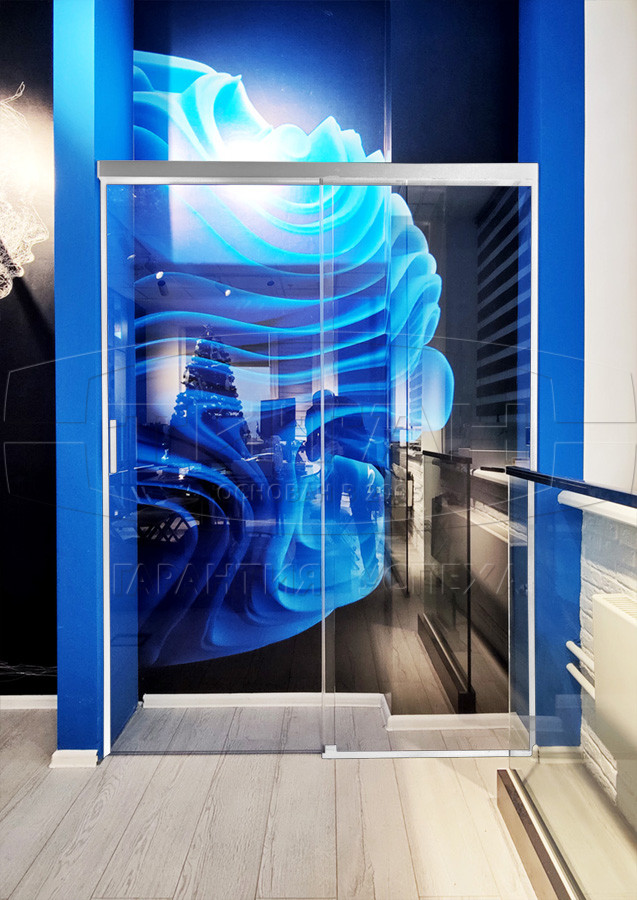 Комплект раздвижной системы "Рио" предназначен для сборки душевого граждения в прямой проем с одной откатной дверью и одним глухим полотном.