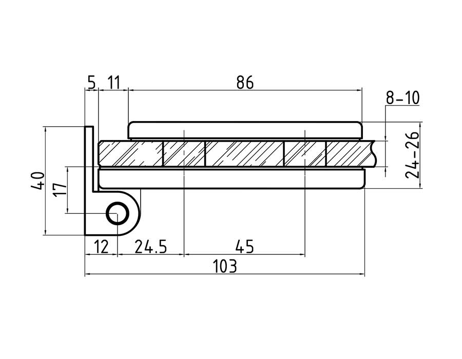 ширина двери – до 800 мм; масса двери – до 35 кг на 2 петли; одностороннее открывание; для стекла 8,10 мм; совместима с Ti-801H, Ti-802H