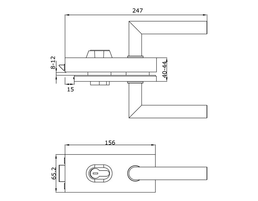 в комплекте с нажимным гарнитуром и двухсторонним евроцилиндром; для стекла 8-12 мм