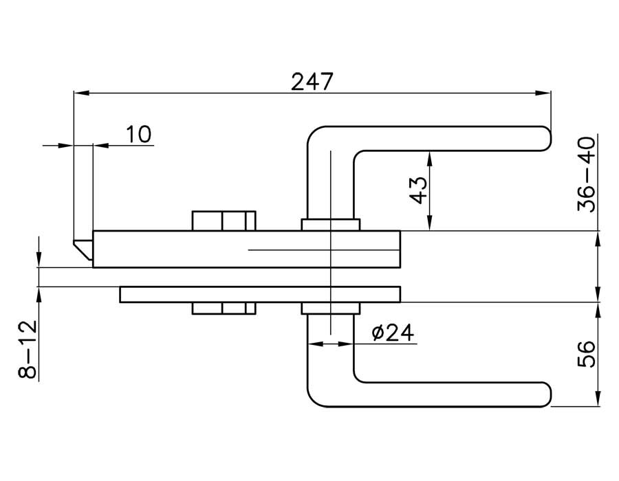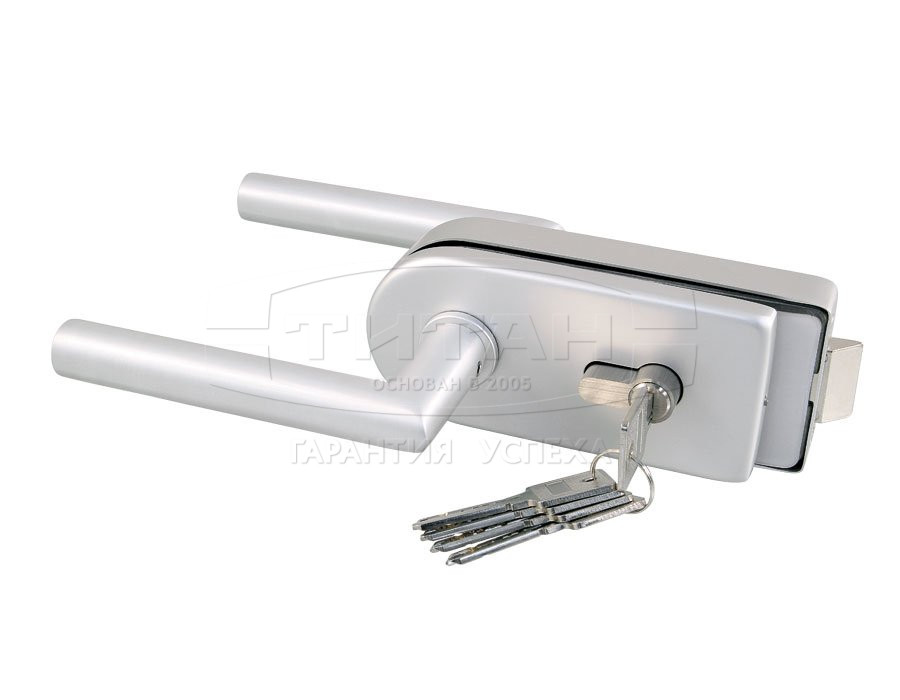 ключ+защелка; в комплекте с нажимным гарнитуром; для стекла 8-12 мм; отделка: анодированный алюминий