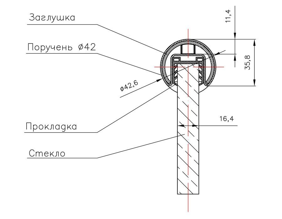 T-104А AL Поручень для лестничных ограждений (анод. алюминий). D42,4mm