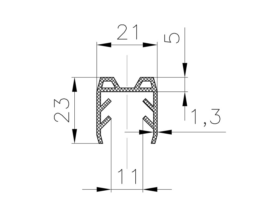 T-105-6 Уплотнитель для стекла 16мм для поручня 50х50 (длина 3000м)