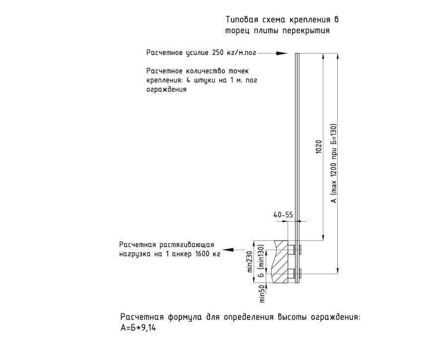 - Крепление к поверхности с помощью анкеров диаметром 10 мм