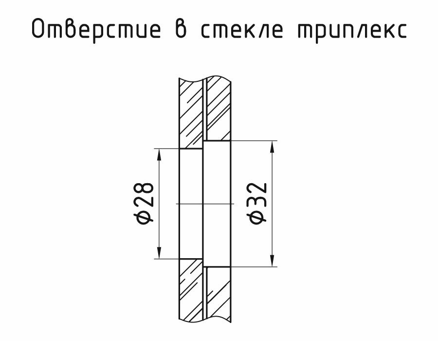 - Применимо для всех комбинаций триплексов общей толщиной до 22 мм- Отверстие в стекле 28 мм
