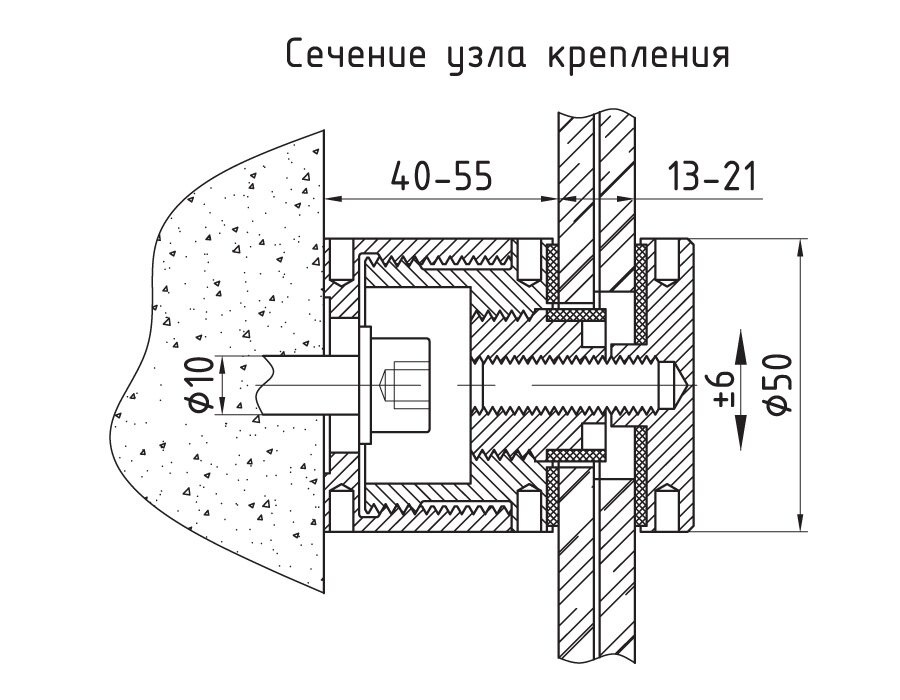 - Допустимая погрешность установки точечного крепления +/- 6 мм