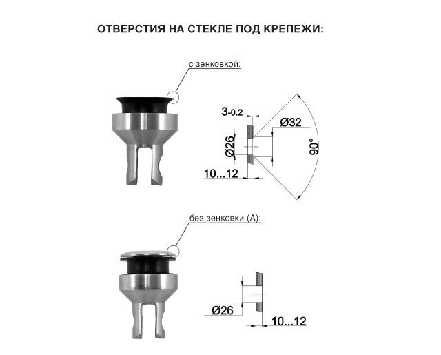 При правильном расположении технологических отверстий нагрузка от стеклянных полотен передается на крепеж, а не на стекло.