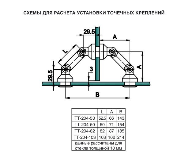крепление на три стекла штанга – 82 мм под зенковку