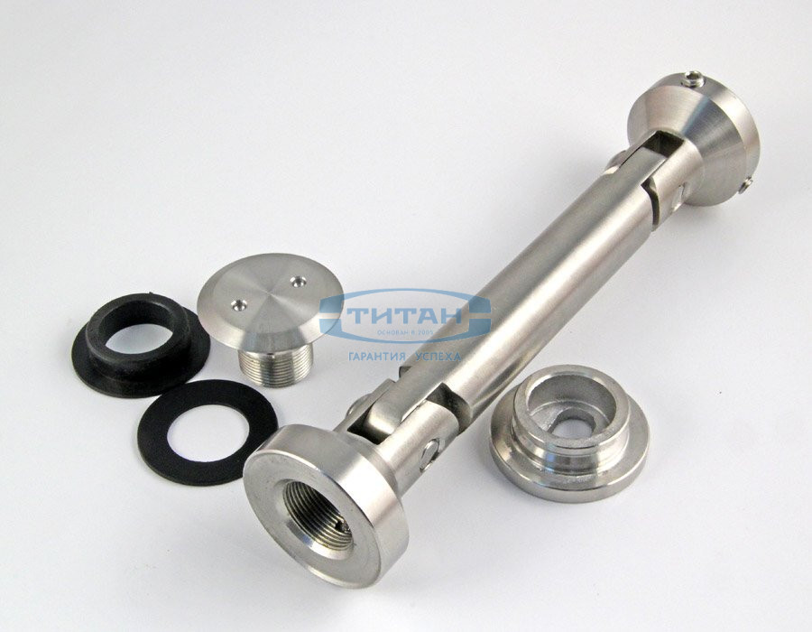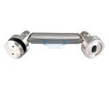 Крепление представляет собой металлическую штангу длиной 103 мм и весом 520 г, оснащенную регулируемыми коннектор округлой формы. Изделие используется при установке стеклянных ограждений или перегородок для фиксации панелей к стене. За счет подвижных коннекторов стекло может крепиться на удалении от стены и под нужным углом. Целостность стеклу при эксплуатации готовой конструкции обеспечивают пластиковые прокладки круглой формы, которыми оборудован коннектор. Данное крепление также исключает образование сколов и растрескивание полотна в месте контакта и обеспечивает надежность соединения.