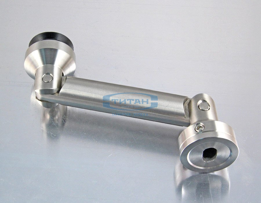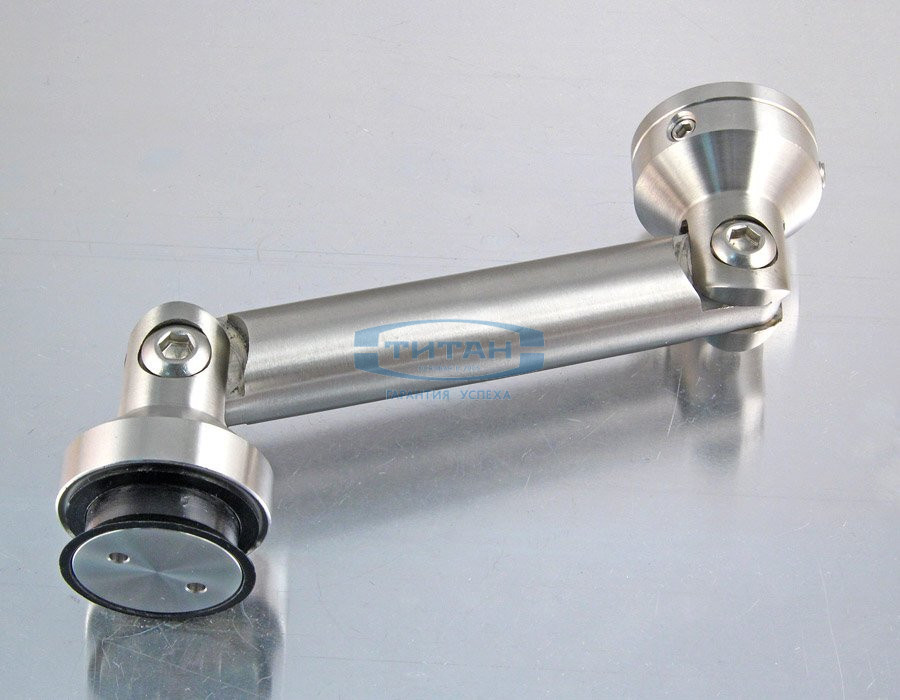 Крепление «стекло – стена» «TT-201» представляет собой фурнитуру, предназначенную для фиксации и соединения двух плоскостей под нужным углом. Изделие изготовлено из нержавеющей стали, обладающей высокими качественными характеристиками, а его блестящая матовая поверхность обеспечивает модели прекрасные декоративные свойства. Крепление состоит из двух точечных коннекторов диаметром 8 мм и соединительной штанги длиной 103 мм. Изделие является регулируемым, что позволяет крепить стекло под разными углами — от 90 до 180 градусов. Сферические коннекторы состоят из двух одинаковых пластинок, оснащенных специальной прокладкой, обеспечивающих надежную фиксацию стекла и защиту от скольжения, изломов и растрескивания.