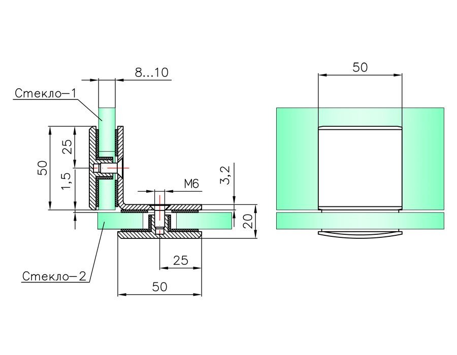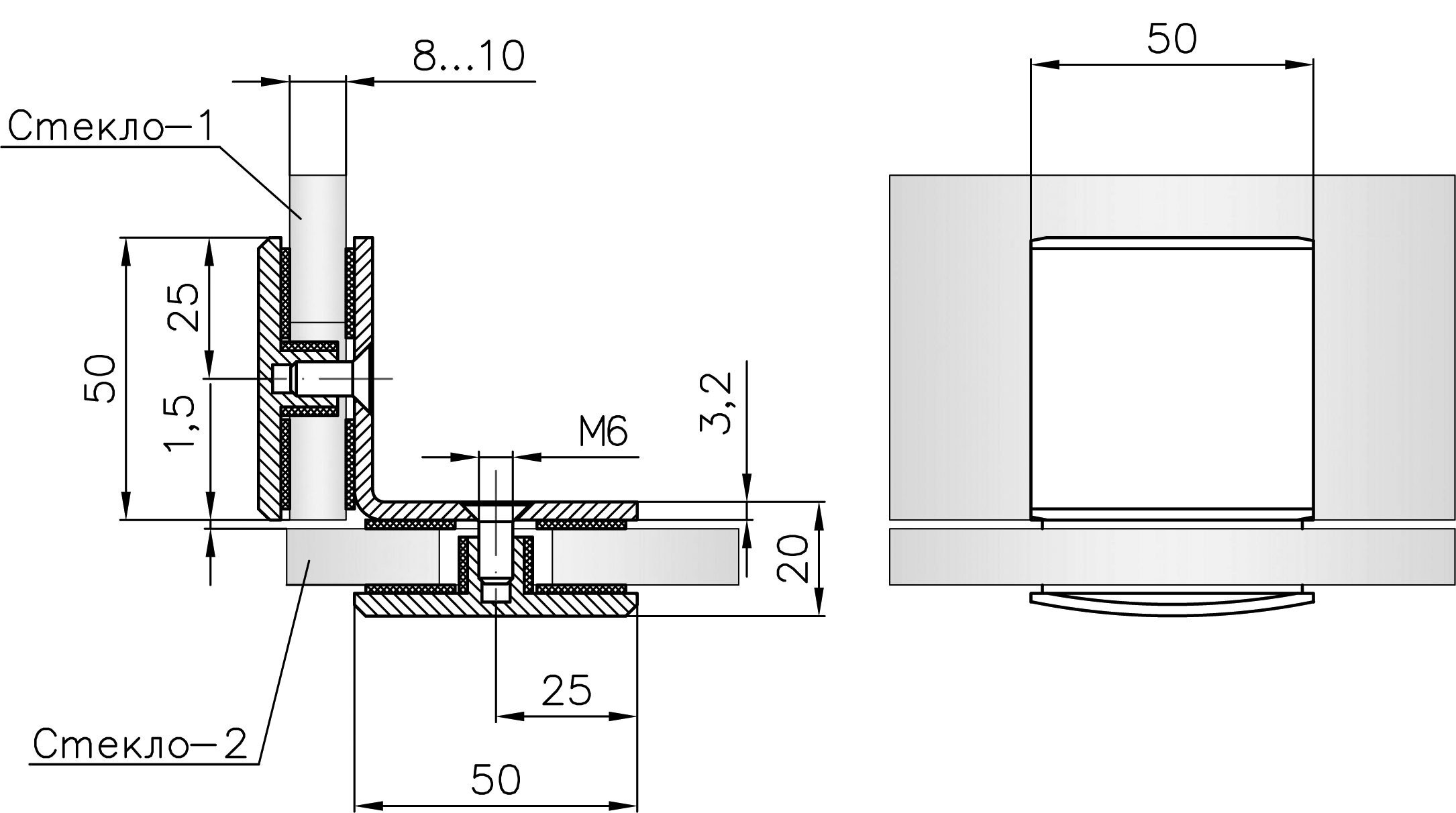 предназначен для установки на закаленное стекло; цветовое исполнение - полированный хром и матовый хром, для стекла 6, 8, 10 мм.