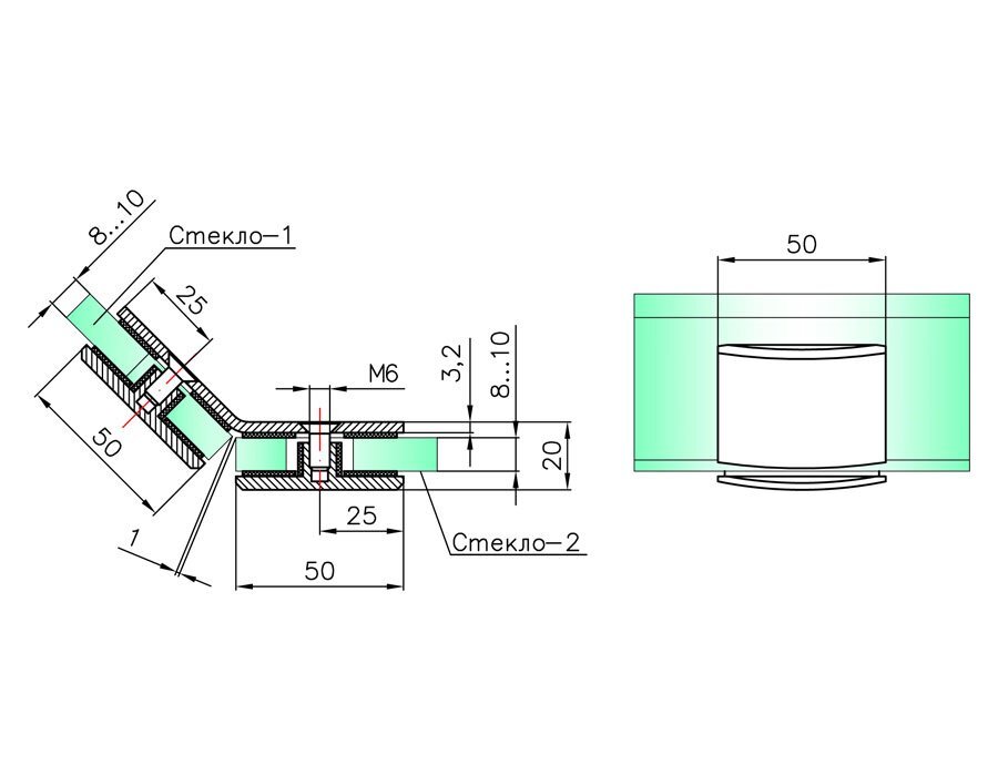 стекло – стекло; 135°; коннектор может быть использован в серии «Классика» и «Аква»; для стекла 6, 8, 10 мм