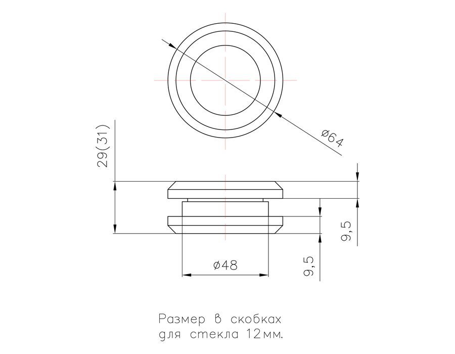 комплект; кноб плоский с винтовым соединением для стекла 10-12 мм