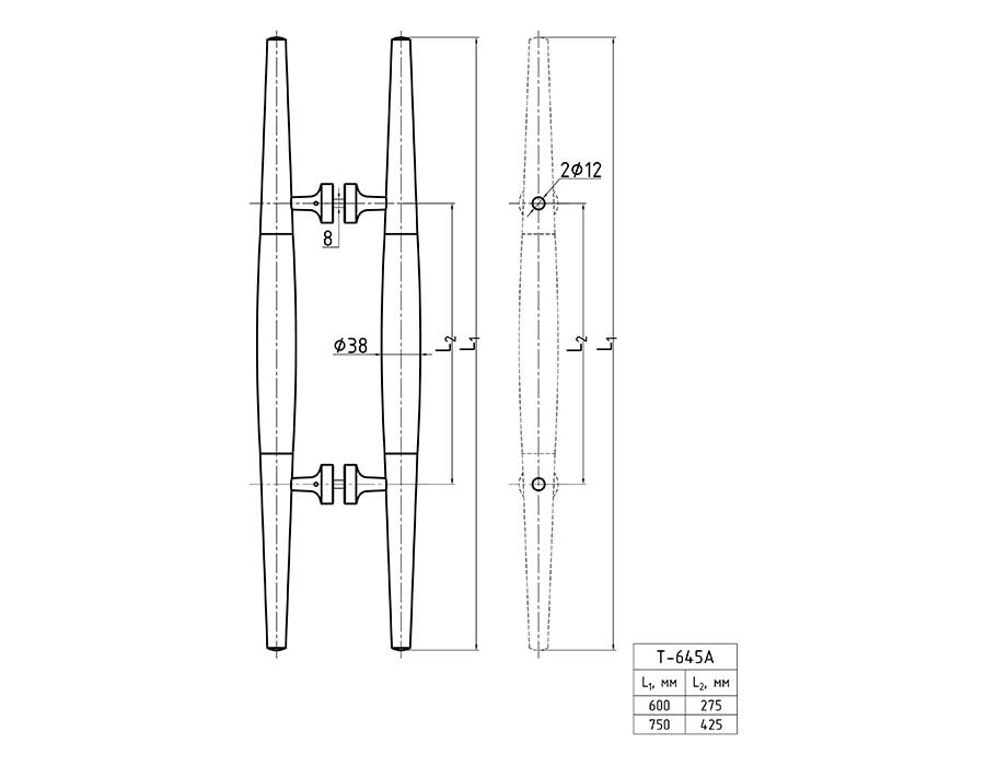 T-645A 38x425x750 PSS/Red wood Ручка комплект