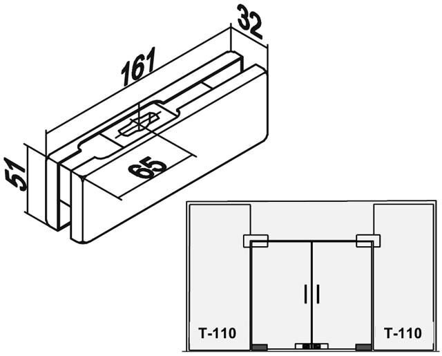 Фитинг «Т-110» имеет закрытую форму и комплектуется вставкой под ось доводчика. Он может использоваться со стеклом толщиной 10 и 12 мм и вместе с другими нижними комплектующими обеспечивает открывание створки с поворотом до 116 градусов. Изделие совместимо с нижним шарниром «Т-110-12» и доводчиками «T-84D» и «T-86D». Оно устойчиво к повышенной влажности, перепадам температур и воздействию агрессивных жидкостей. К основным преимуществам фурнитуры «Т-110» относятся: