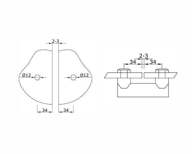 коннектор стекло-стекло; закрепление стекла под углом 180°; для стекла 8-12 мм