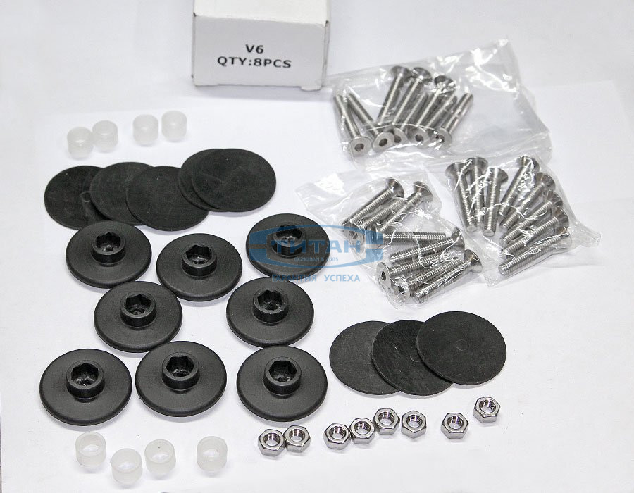 Пластины для фиксации раздвижной системы на полотно. Их крепят с помощью винтовых зажимов. Набор пластин состоит из 8 шт.