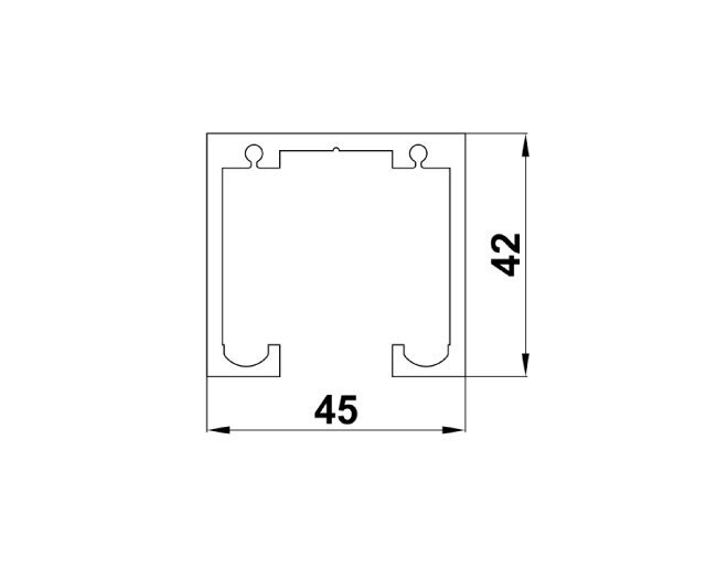 Фурнитура для раздвижных перегородок серии «Гармоника» допускает свободную комплектацию входящих в нее изделий, что позволяет создавать интересные и оригинальные решения для интерьеров. Обязательным элементом является лишь верхний несущий профиль ТН-620. Именно эта деталь отвечает за поддержку секций в вертикальном положении, поэтому она производится из высокопрочного материала. Длина трека составляет 5000 мм, ширина — 45 мм, а высота — 42 мм. Изделие отпускается кратно 0,5 хлыста, то есть длиной 2,5 метра.