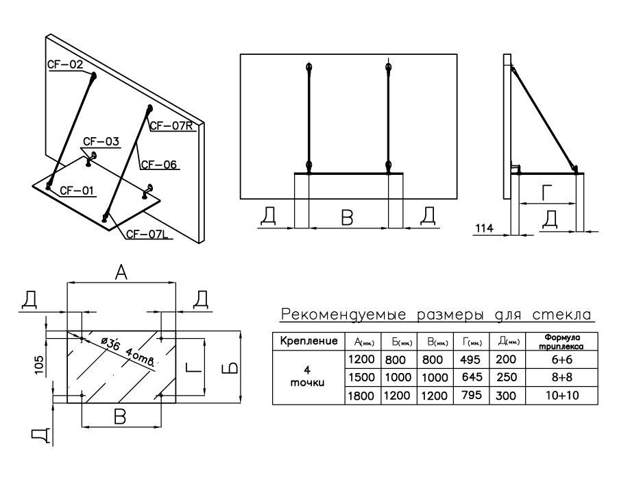 Каленое стекло, как невероятно прочный материал, не допускает возможности обработки на месте, в процессе сборки готовой конструкции. Нельзя просверлить или расширить отверстия, сместить посадочные точки крепления фурнитуры. Система тяг при этом допускает некоторую свободу регулировки.