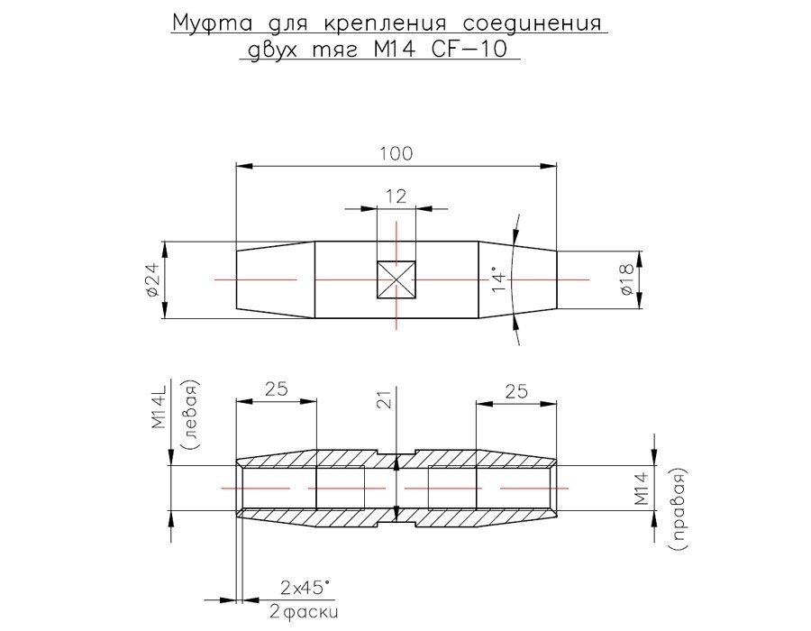 CF-10 SSS Муфта для соединения двух тяг М14