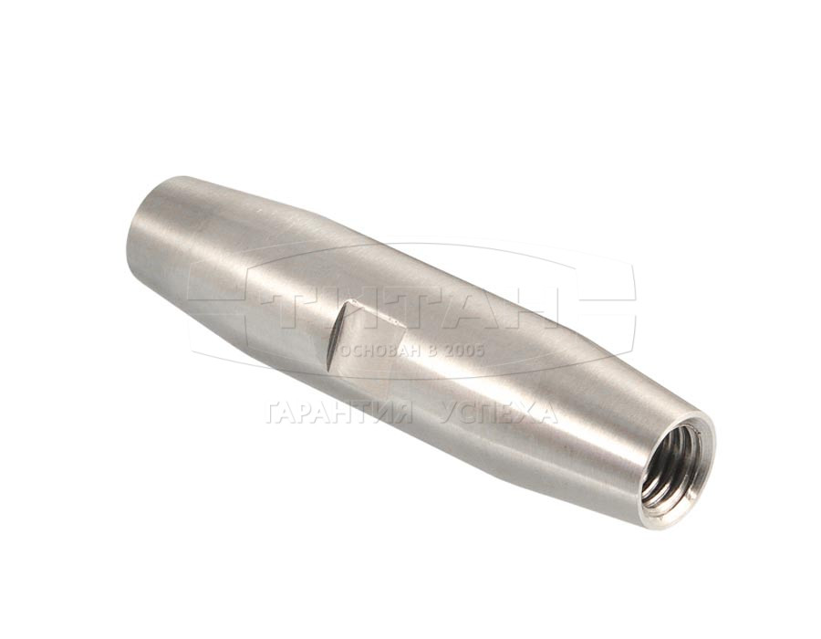 Большое внимание в процессе производства уделяется точности формирования внутренней резьбы. Предлагаемая по лучшей цене компанией Титан муфта - совместима с комплектами фурнитуры и тягами, предназначенными для монтажа стеклянных конструкций. Глубина зоны резьбы тщательно контролируется.