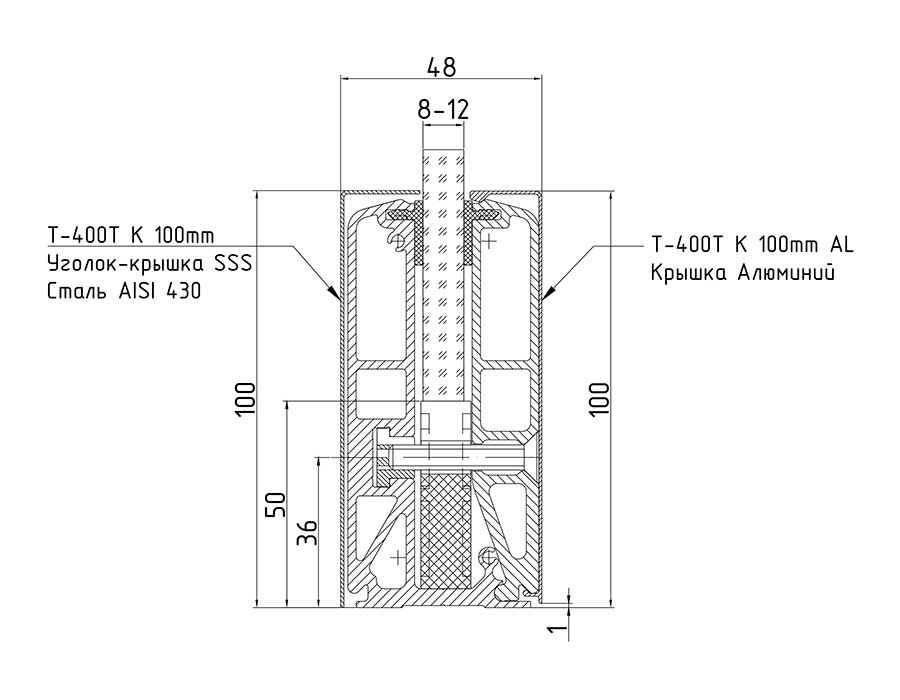 Последний элемент работает как средство для вписывания конструкции с применением алюминиевого элемента в дизайнерское решение помещений. Декоративные крышки и заглушки приобретаются отдельно, в каталоге - несколько видов таких изделий.