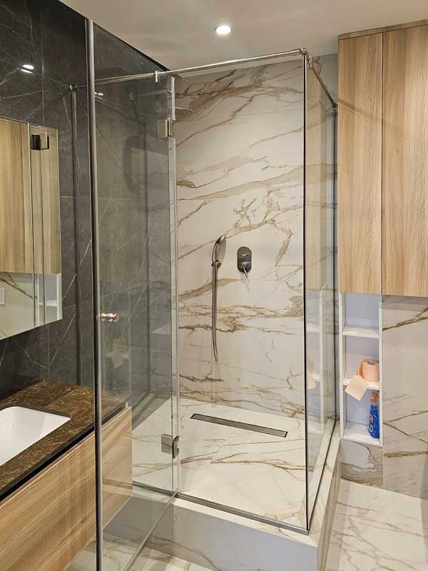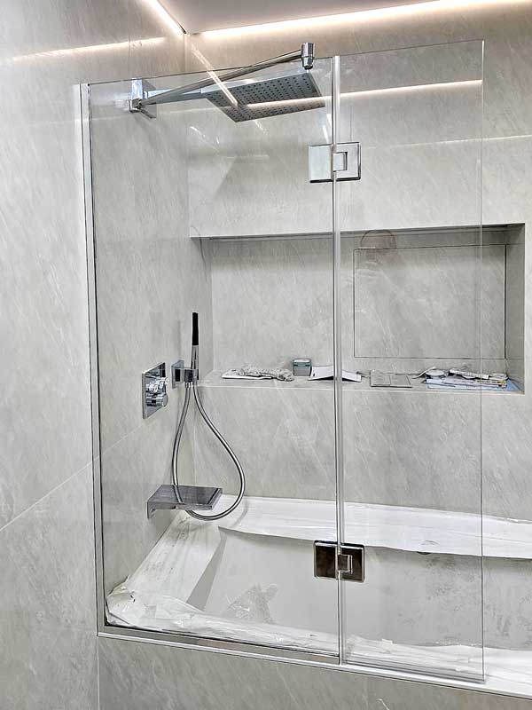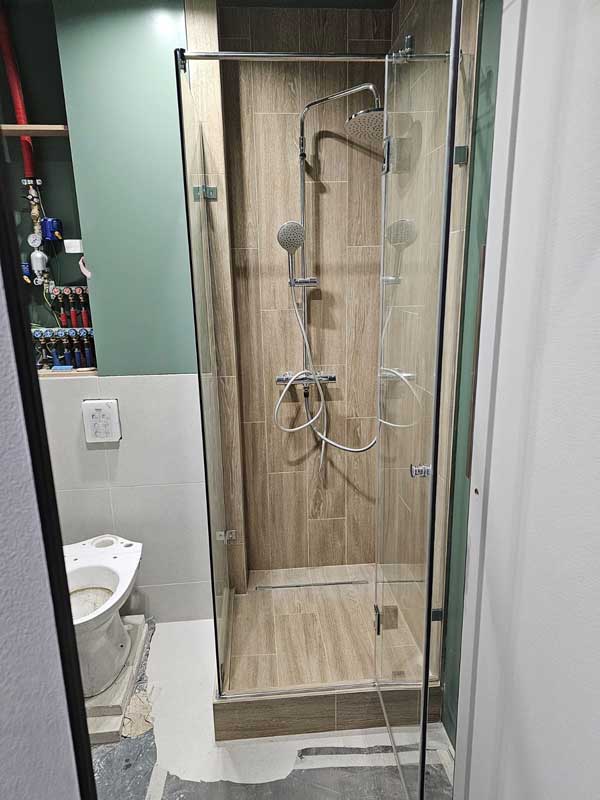 Высокая скорость монтажа кабинки и всех коммуникаций. Большинство моделей монтируется при участии алюминиевого профиля, и конструкция может быть создана в рекордно короткие сроки. Единственная, что может отнять большое количество времени – это обустройство слива. И если использования поддона не подразумевается, то придется поднимать пол, чтобы обустроить сливной трек.
