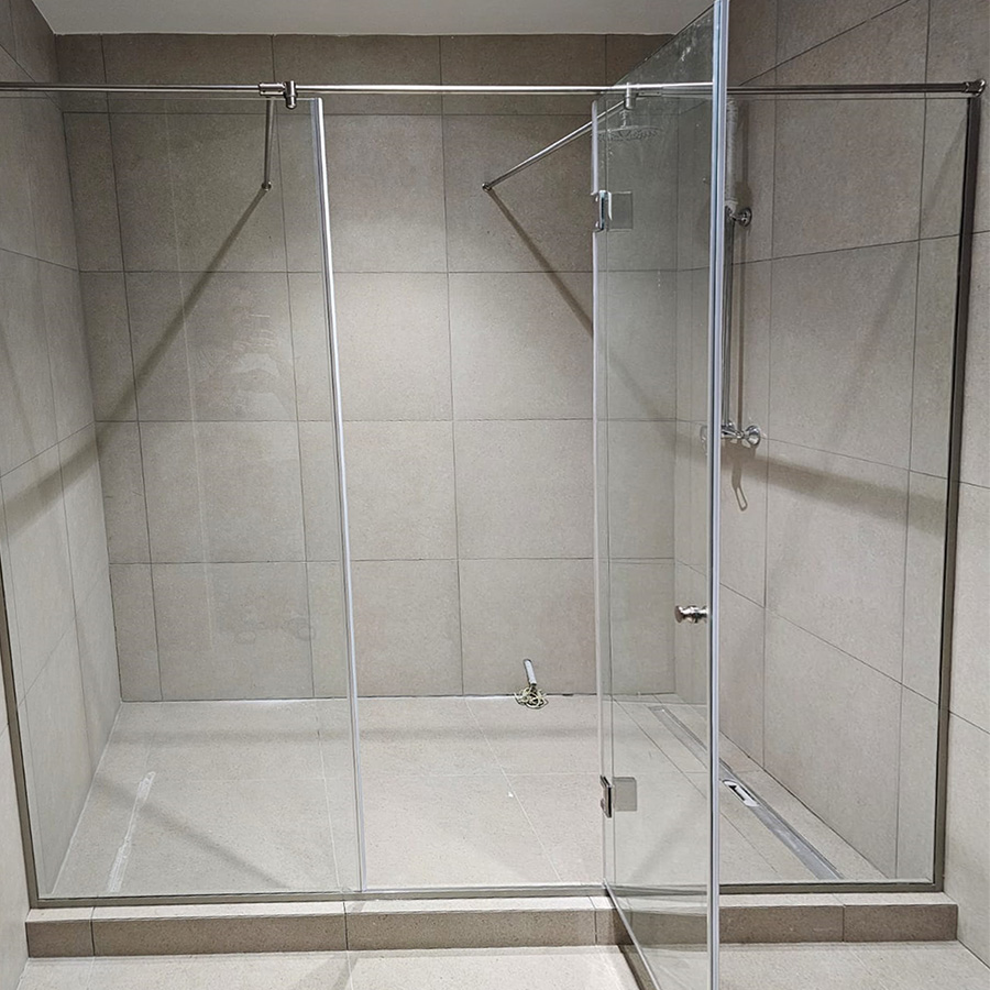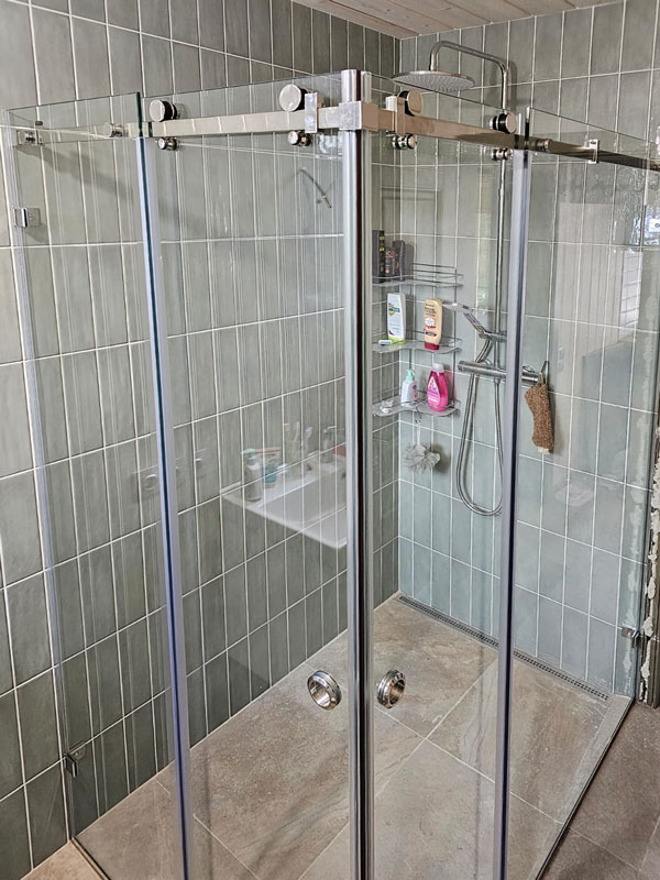 Раздвижные двери. Если планируется изготовление и установка достаточно большой кабинки или наоборот, её нужно как-то разместить в небольшой ванной комнате без ущерба для эргономики, то лучше ввести в состав конструкции дверную систему раздвижного типа, поскольку это реально сэкономит пространство и позволит свободно открывать/закрывать дверные створки.