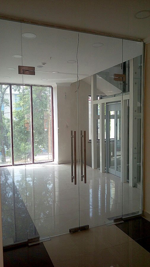 Маятниковые двери, как правило, входят в состав цельностеклянных перегородок и изготавливаются из закаленного стекла толщиной 8-12 мм. Допустимые геометрические размеры маятниковых дверей на фурнитуре «Титан» серии «Классика»: по высоте – до 3 м, по ширине – до 1,1 м. При этом вес такой двери (на фитингах) может достигать сотни килограммов.
