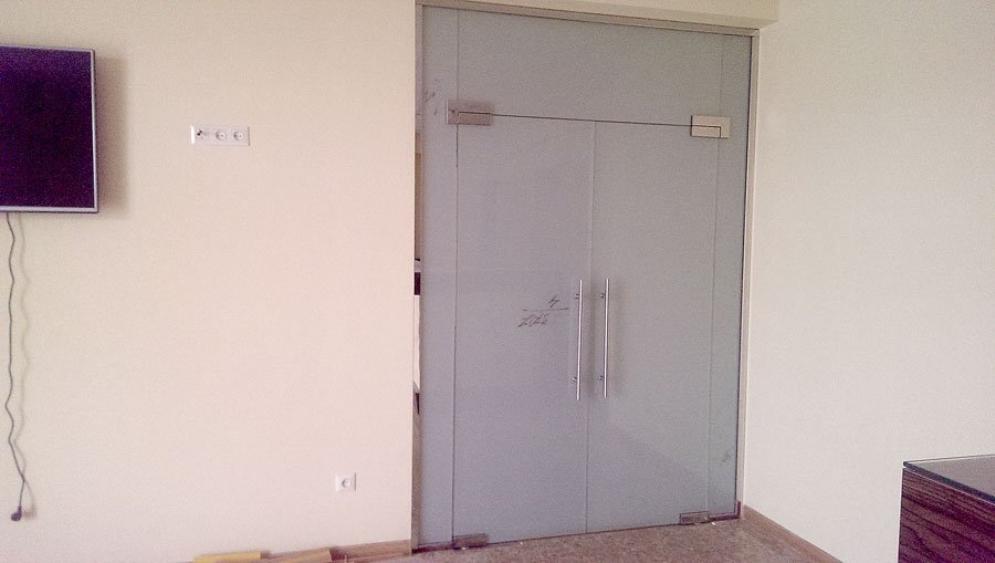 Современный рынок предлагает несколько вариантов стеклянных маятниковых дверей: