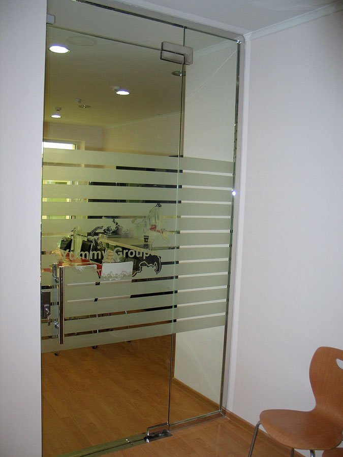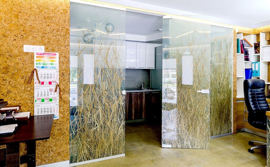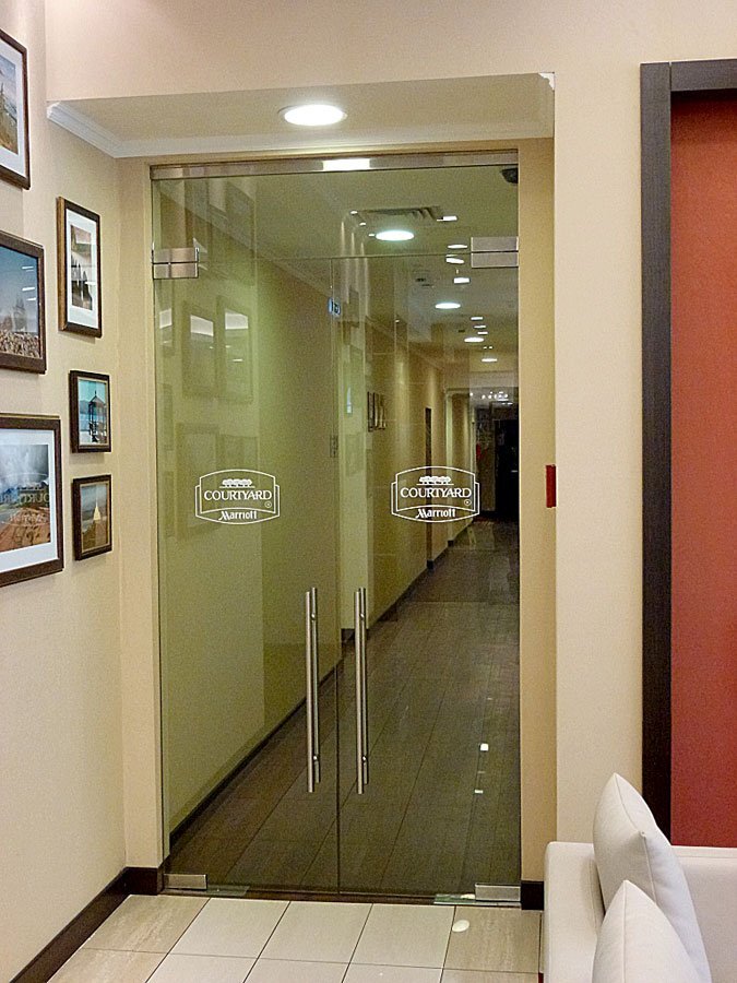 Возможность декорирования дверей на любой вкус и цвет. Можно нанести любой рисунок, логотип или информацию для посетителей.