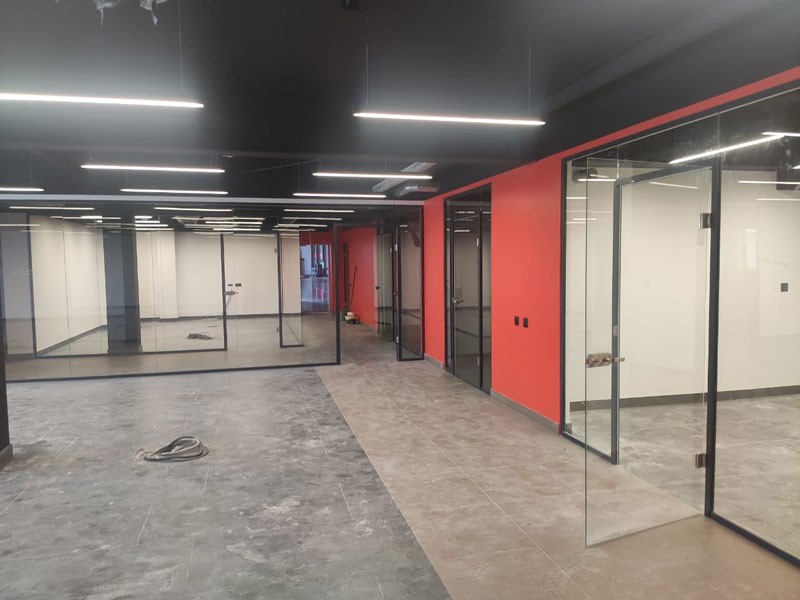 Экономия пространства. Цельностеклянные конструкции отнимают у помещения всего 1% полезного пространства в отличие от перегородок из непрозрачных материалов, «забирающих» 5% площади.