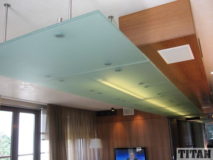 Существует несколько основных вариаций потолков из стекла. На сегодняшний день они востребованы для декорирования жилых и коммерческих помещений. Среди них можно выделить:
