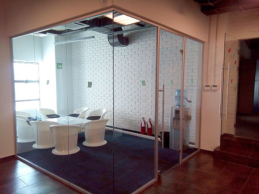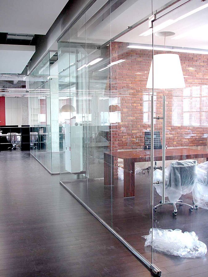 По большей части зажимной профиль используется для создания цельностеклянных перегородок как в офисных помещениях, так и в квартирах. Также — для установки витрин в торговых и развлекательных центрах, и для крепления стеклянных дверей. Данная фурнитура является одним из самых эффективных элементов, с помощью которых выполняется сборка цельностеклянных конструкций.