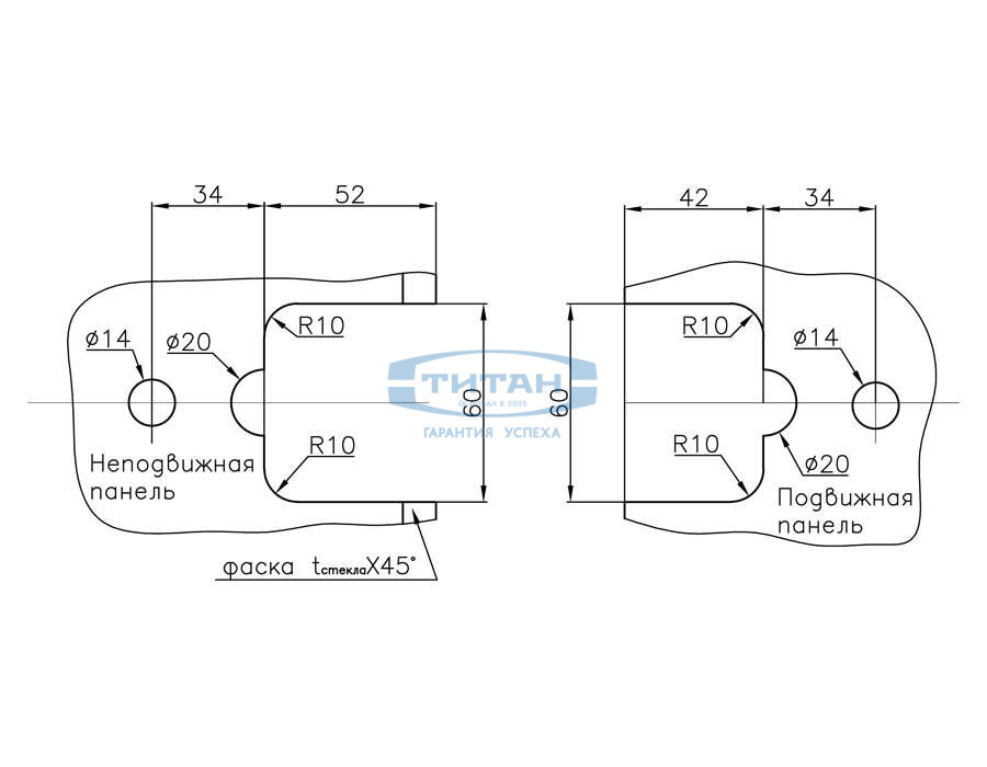 стекло-стекло; угол поворота 135°; функция самозакрывания от 25° поворота в обе стороны; ширина двери: до 800 мм; масса двери: до 45 кг на две петли; для стекла 6, 8, 10 мм